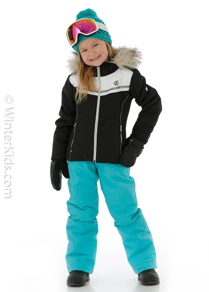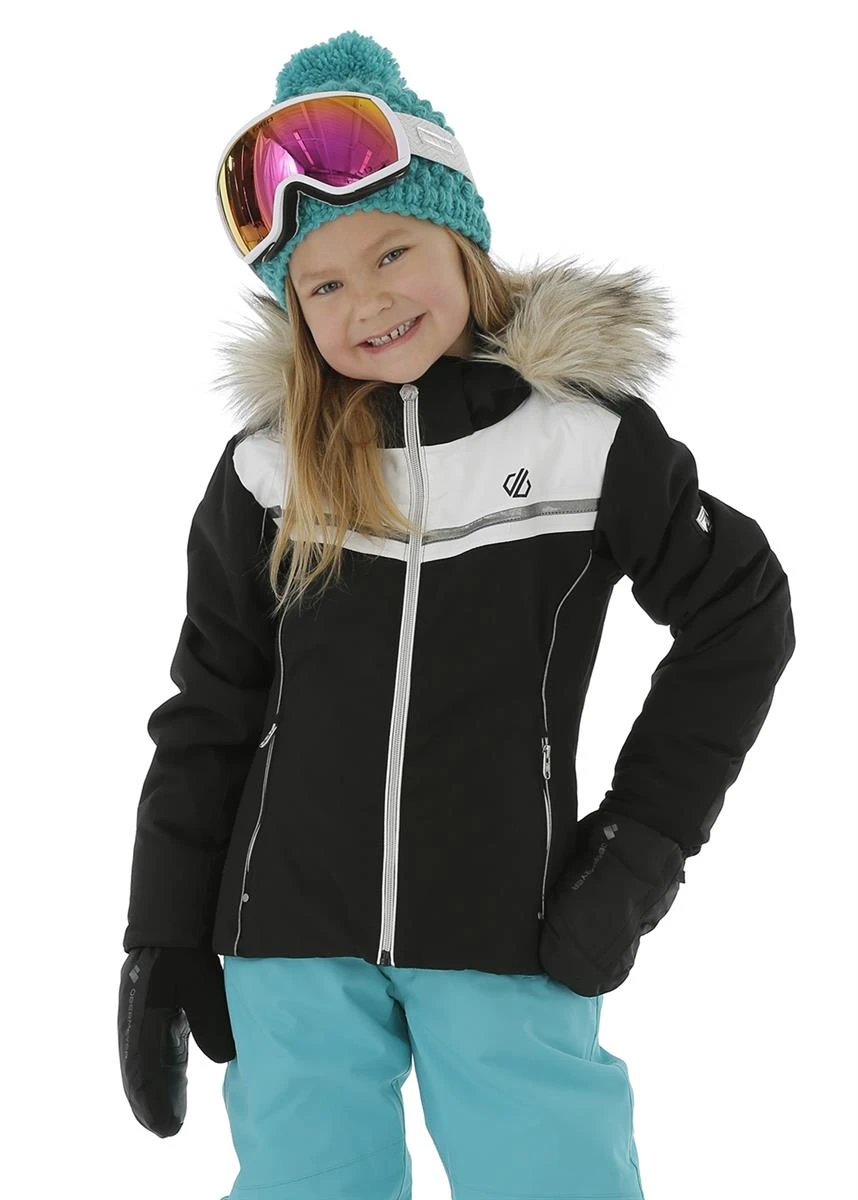 Girls Estimate Dare 2b jacket is a color-blocked design with ARED V02 20/20. Packed with slope-friendly performance. Made from highly waterproof/breathable polyester fabric. Seam-sealed. 4-way stretch for nimble mountain moves. Fully lined with high warmth, low bulk fill. Protective hood and a silky soft faux-fur trim (detachable). Powder blocking snow skirt (detachable) with gel gripper. Inner stretch cuffs seal in the warmth. Zipped lower pockets plus one for your lift pass and an inner goggle stow.