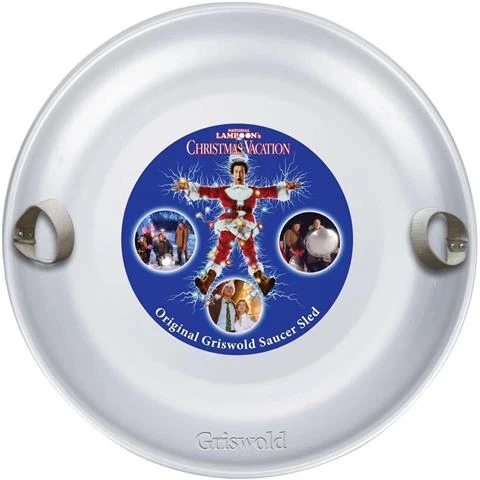 The Slippery Racer Griswold Christmas Vacation Snow Saucer lets you fly down the hill with the same sled as Clark Griswold in the famous holiday classic, National Lampoon’s Christmas Vacation. It’s made with durable premium grade aluminum. It’s fun to ride, but also makes a great holiday decoration.