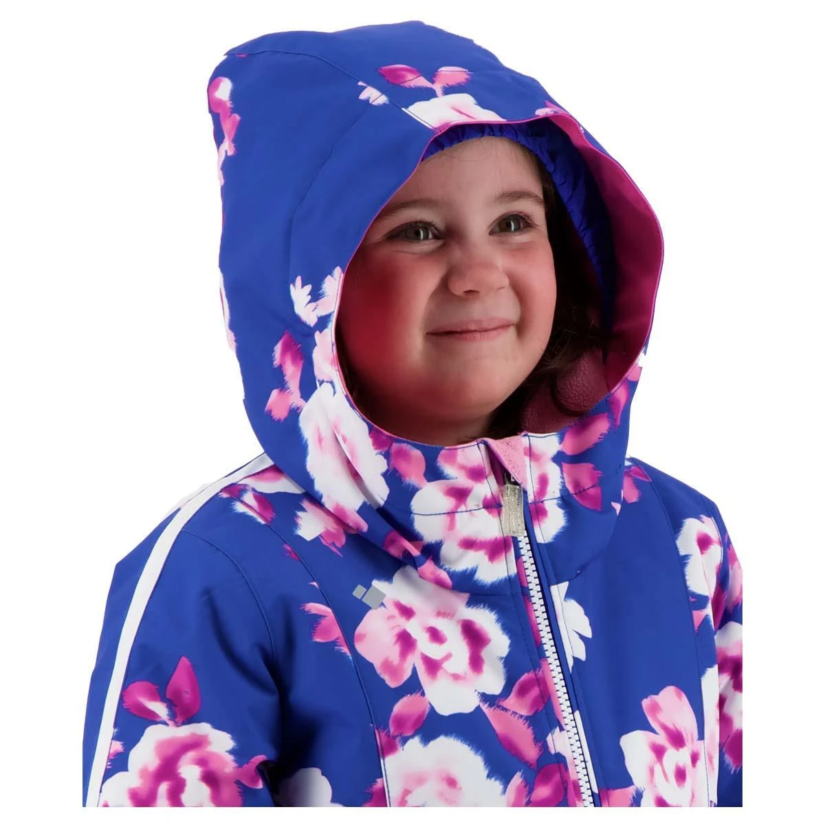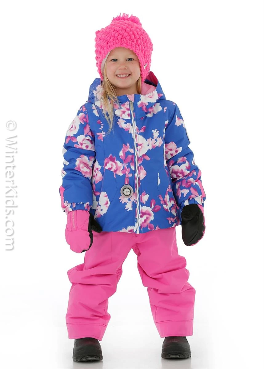 This Toddler Girls Iris Jacket will keep your child warm and dry all day. Kids’ wonder of the change of seasons is to be celebrated. The Iris Jacket brings to life the style, color and prints that reflect a young girl’s fancy around living and playing outdoors. She should never want to come inside when her curiosity opens her unbound imagination. Snow brings out the child in all of us; and we, as parents, design made-to-last products with reflective safety features, snug fitting elastic cuffs and hems, and fleece-lined collars, pockets, ear-warmers, and chin wind-guards. Our innovative “I-Grow”™ Extended Wear System accommodates your girl growing up over the year; we lovingly encourage passing the jacket along between your family or friends.
