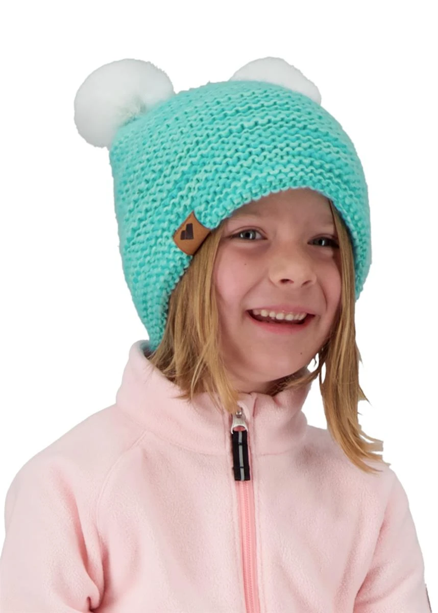 This Obermeyer Glen FF Pom-Pom beanie has two cute poms that are a blend of 67% acrylic and 33% modacrylic dipped raccoon faux fur. Woven with a bulky 100% acrylic yarn, the texture is divine and complements the elegant poms above. The fleece inner band on the beanie will leave your little one warm and comfortable all day.Â