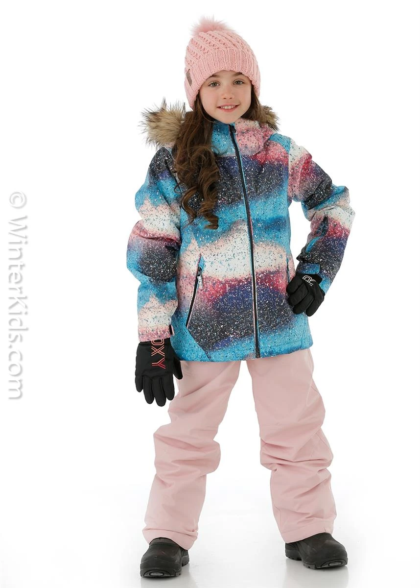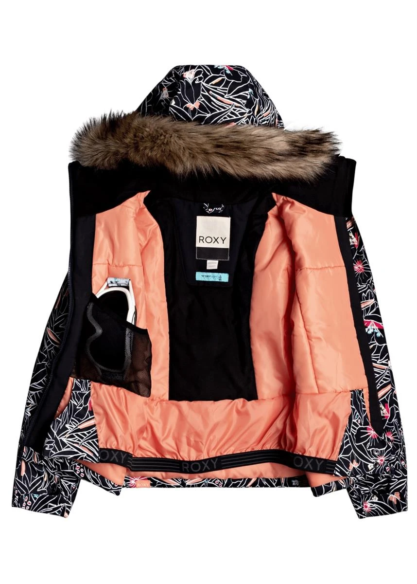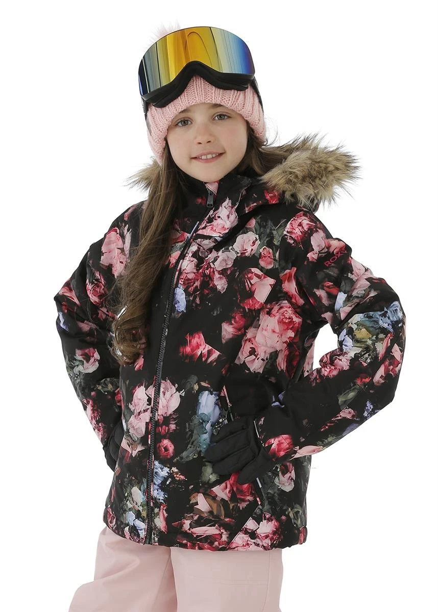- Snow jacket girls featuring a classic, comfortable regular fit, and a 10k ROXY DryFlight® technology for better waterproofing technology. Complete with a polyester plain weave fabric.
