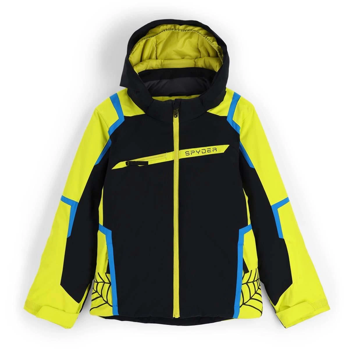 Little racers with big style meet their match in the challenger jacket, one of our best-sellers with its souped-up, custom screen-printed Spyder webbing down the side and reflective detailing. It includes all the characteristics of our top-shelf jackets including a removable hood with inner hood gaiter, taped seams, and a powder skirt with snaps and elastic grip. Insulated with PrimaLoft® Black Eco insulation, lined with a 10k/10k stretch EXO SHIELD polyester plain weave laminate and water repellent fabric, the challenger goes unchallenged.